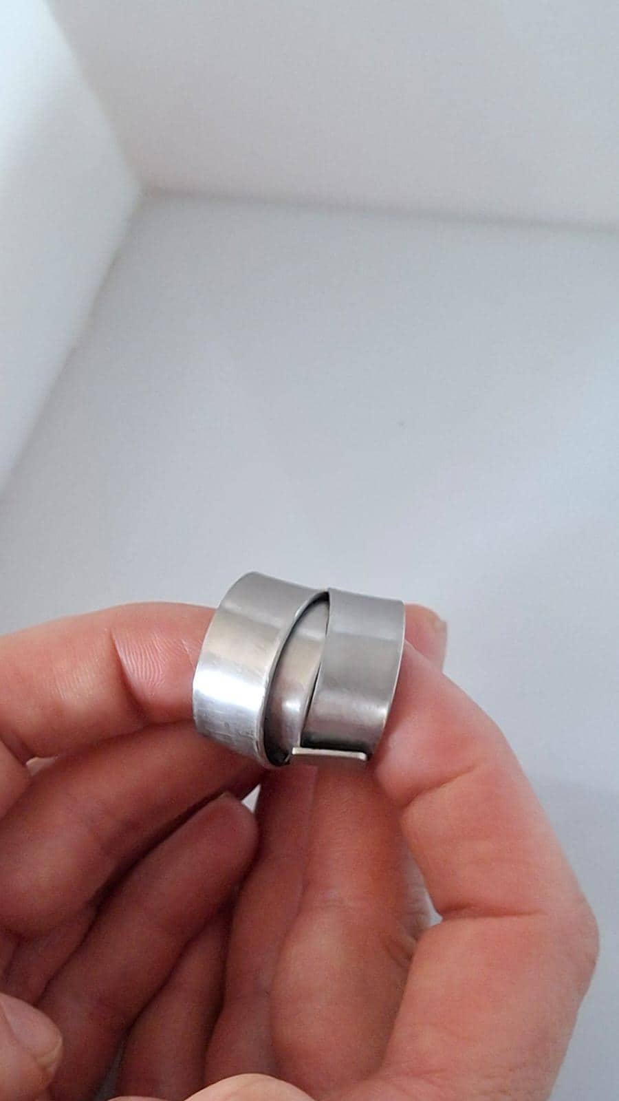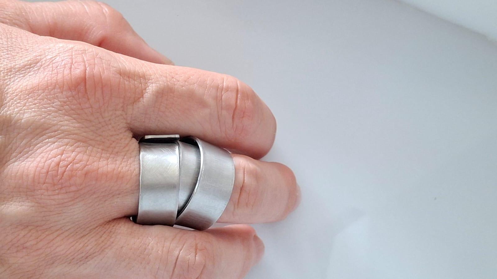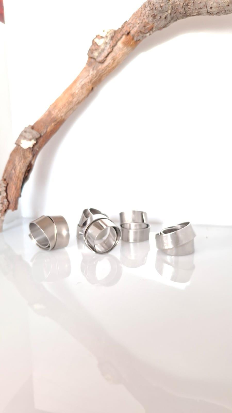 anello maxi in acciaio riciclato, tagliato e lavorato a mano, satinato, lucido oppure martellato misura unica 9/10 us