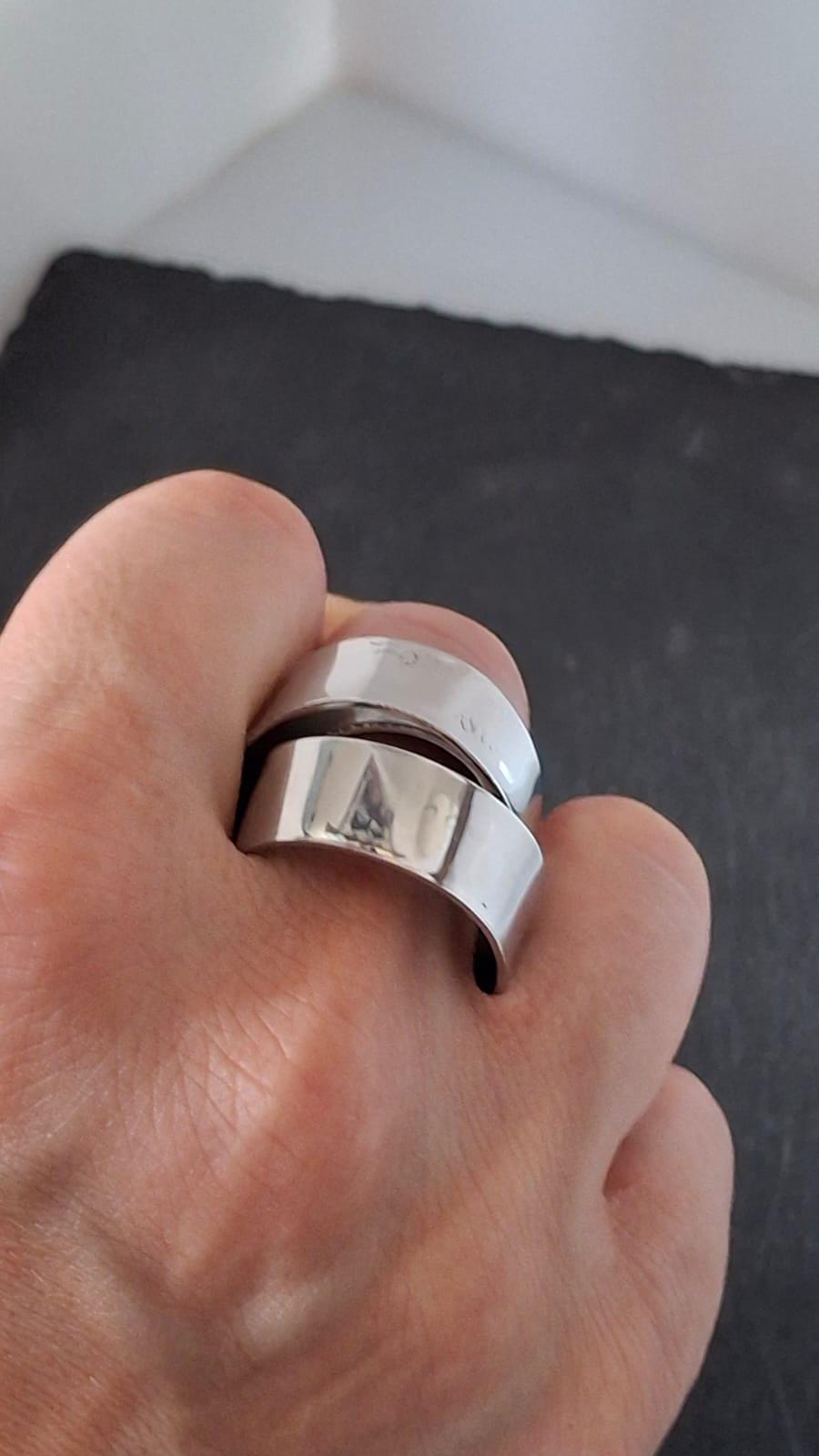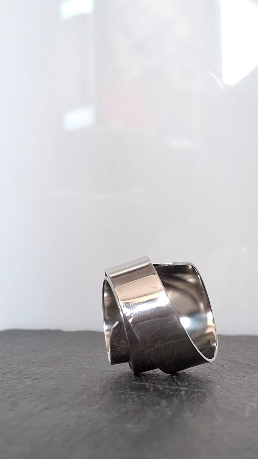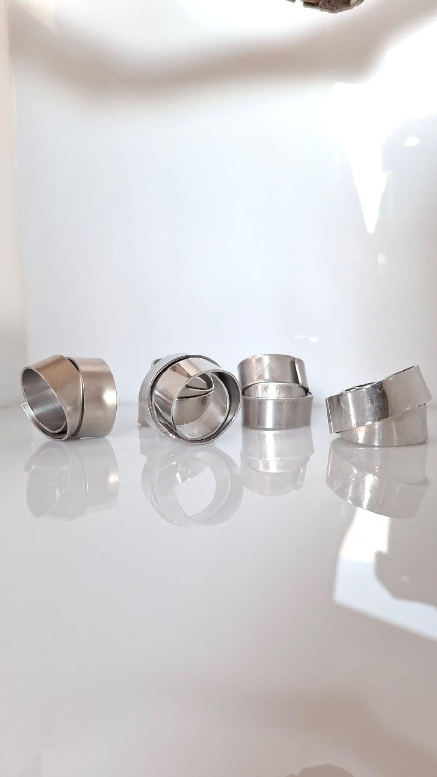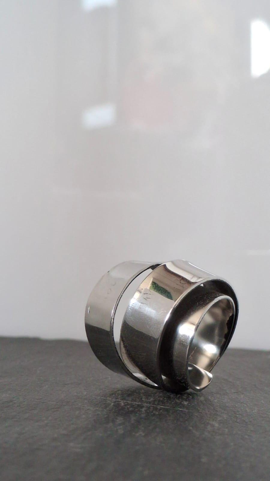 anello maxi in acciaio riciclato, tagliato e lavorato a mano, satinato, lucido oppure martellato misura unica 9/10 us