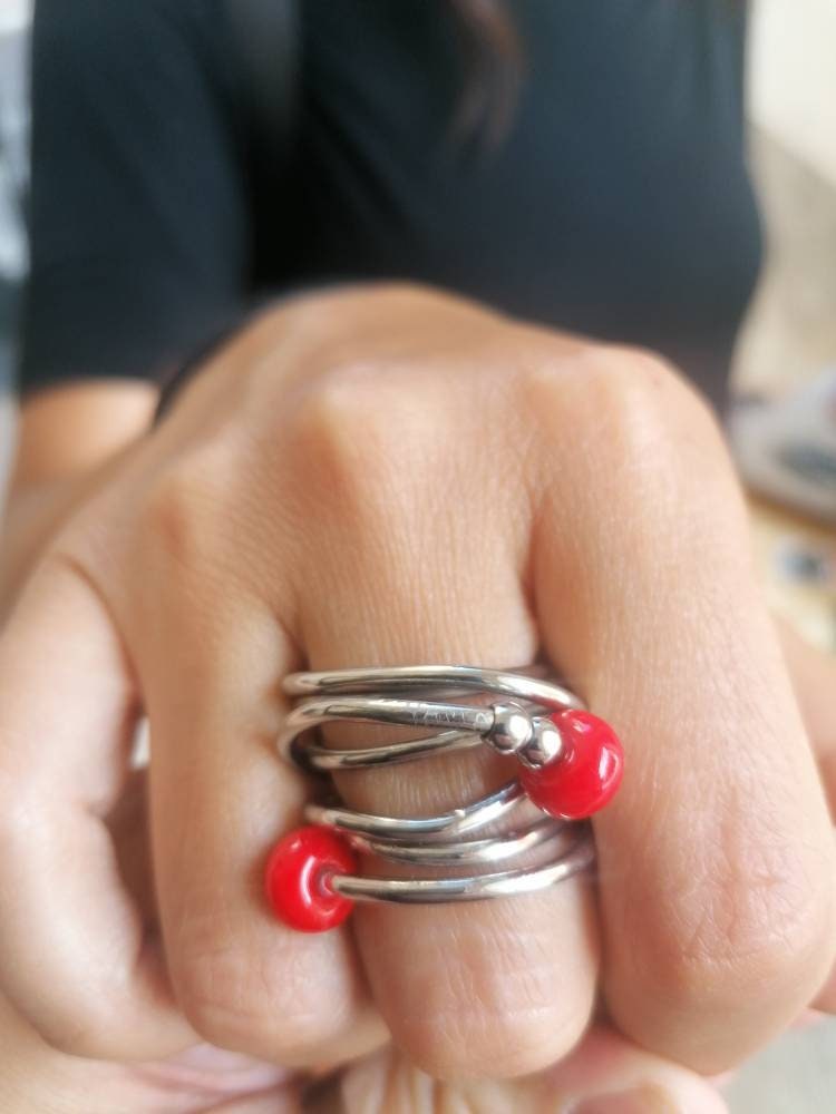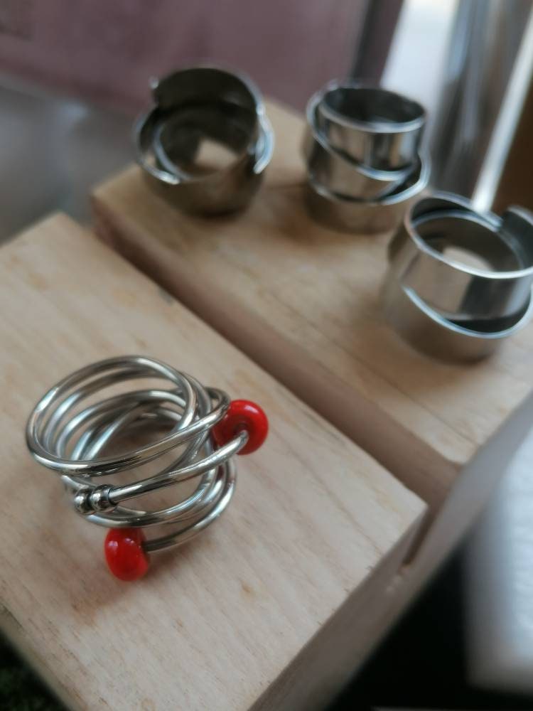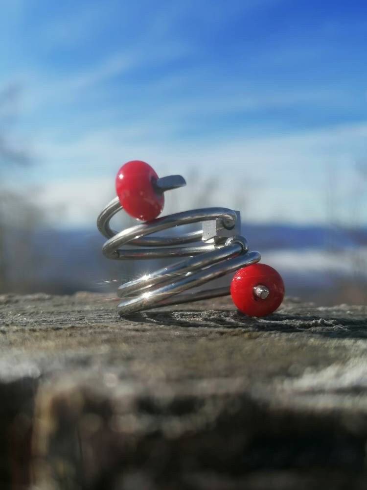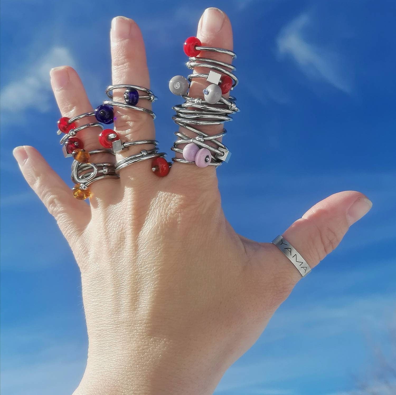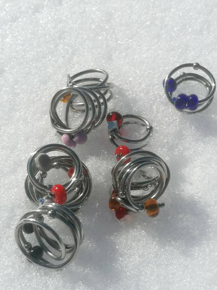 Anello maxi ARIA spirale di acciaio 304 con perle di vetro lavorate a mano colorate