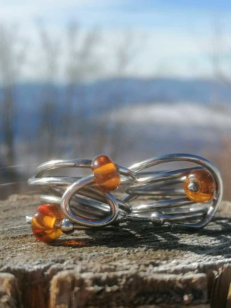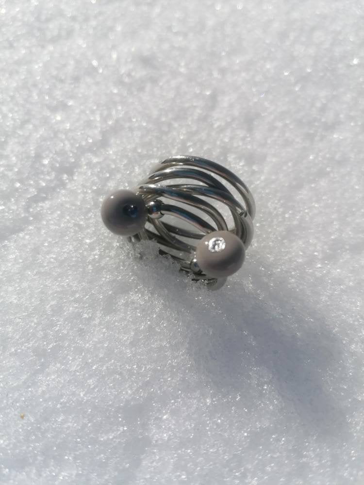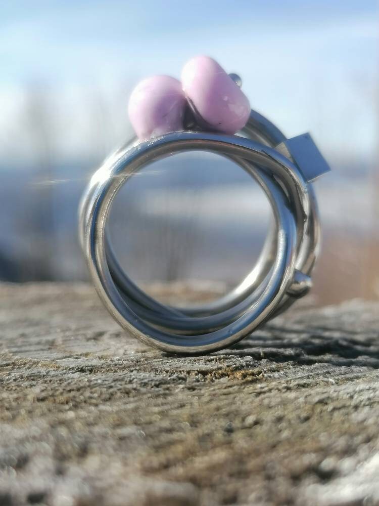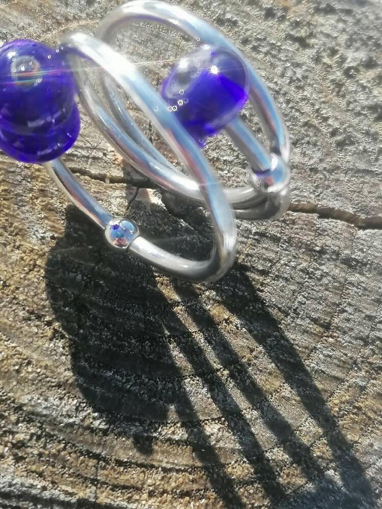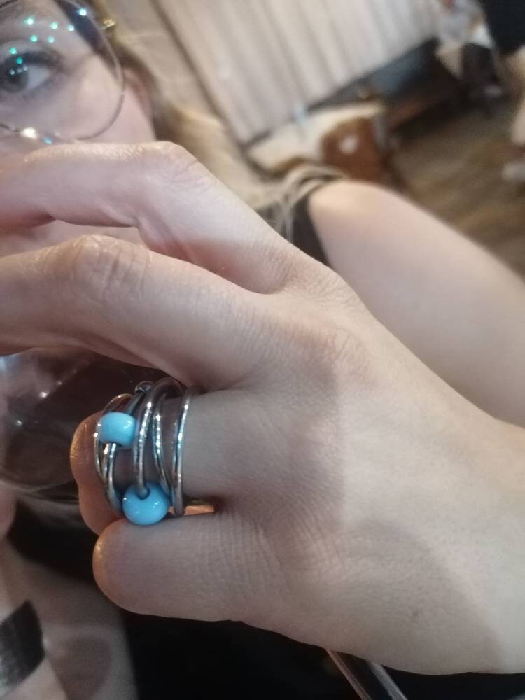 Anello maxi ARIA spirale di acciaio 304 con perle di vetro lavorate a mano colorate